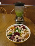 As we were eating this salad for supper tonight, we talked about where we got the ingredients from – primarily our garden and the farmers’ market. My 10 year old observed that most of the food was “local”, so I decided to call it “Locavore Salad.” We have discussions like this because I think it is so important for kids….and all of us for that matter…to know where our food comes from. I read an article online the other day that talked about how a group of teens surveyed didn’t know that eggs came from chickens. Which is a pretty sad commentary…