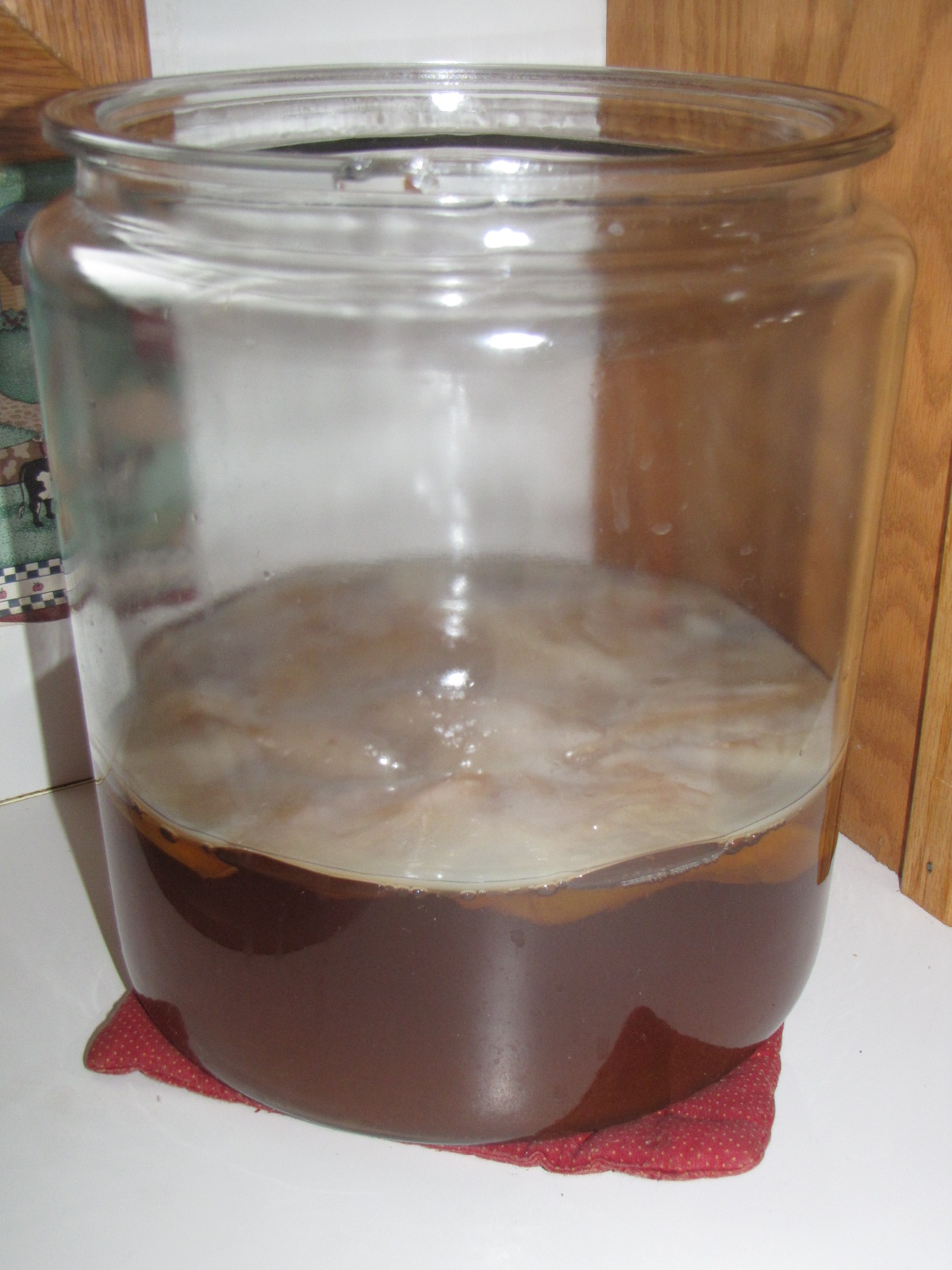 A couple words of warning. If it smells bad/rotten, it probably is. It should have a vinegary smell, and slightly sweet/sour taste.  The scoby should be tannish in color, with a sheen to it. If you have anything turn black, or get slimy/moldy, I’d throw the whole batch out and start from scratch. You also shouldn’t use metal in this process as it reacts with the kombucha. And also, I’ve heard urban legends about scobies growing in septic systems, so if you have one, I’d exercise care in washing and disposing of leftovers (I live in town but I still rinse it and dump it in my plants out back before washing it in the sink).