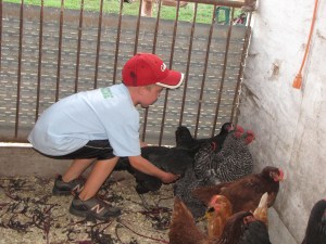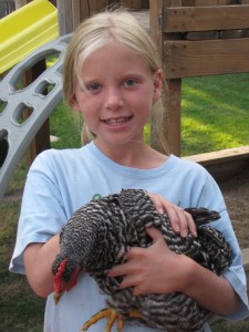 Our girls have been a blast to have (although I could do without the flies)!   A couple are even tame enough already that they like to be petted.  We like watching them “expressing their chickenness” (to coin a phrase from my favorite farmer/author, Joel Salatin).  They make great pets, and I think that the chores are a good way for the kids to see outside their own needs.  It sure beats watching TV!