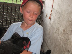 I can’t wait till’ we have chickens in town. My 2 younger siblings, my mom and dad, and I get to fix and pizazz the chicken coop. So excited!!  Anyway, we also get some advantages with the fully developed chickens. What, you say? Well, we get free eggs, something to hold, pet, and study for 4- H. I love to hold the chickens (as long as they don’t poop on me!) One of the big chickens at my grandpa’s farm lets you walk right up to it and pick it up and hold it. Tips for holding chickens – When you grab them, hold their wings down and put the head under your arm so you can see it on the other side. Put your hand under their backside, and remember to stroke the chicken’s back so it knows it is okay.  If you are new to this, you should go for one that is slightly big, and a female. Roosters (males) are a bit scary and aren’t as calm as females. Recently, my little 3 year old sister caught her first chicken! YAHOO!!  Last year I won grand champion at our county fair’s poultry show, and I’m looking forward to practicing with these “classy chicks”! I am very excited for my feathered friends to move into town.