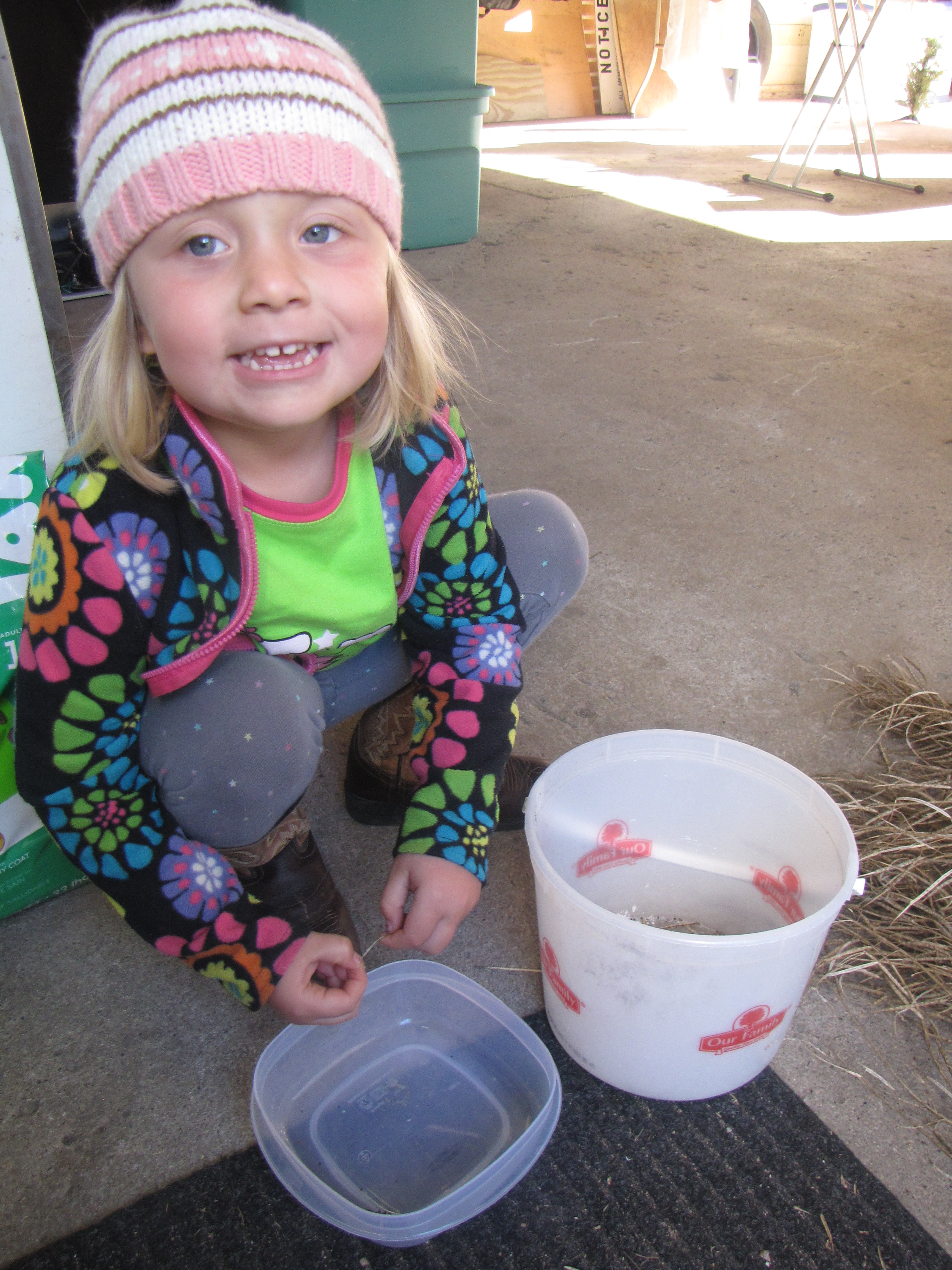 My little helper cleaning the turnip seed pods with me during some quiet moments at our garage sale last weekend…